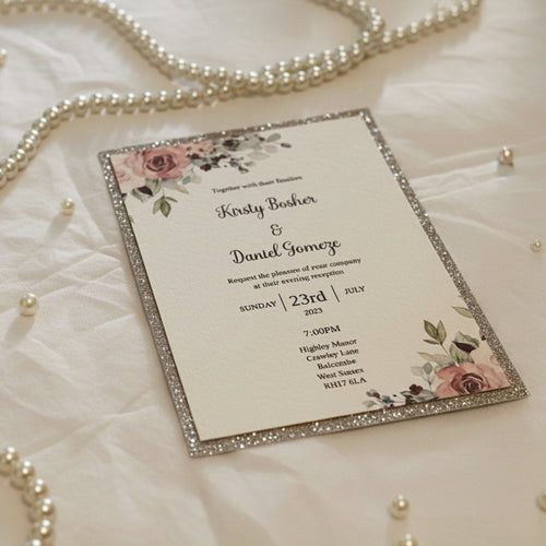 Simple Elegant Wedding Place Card with Glitter Heart – Personalised Event Table Name Card -